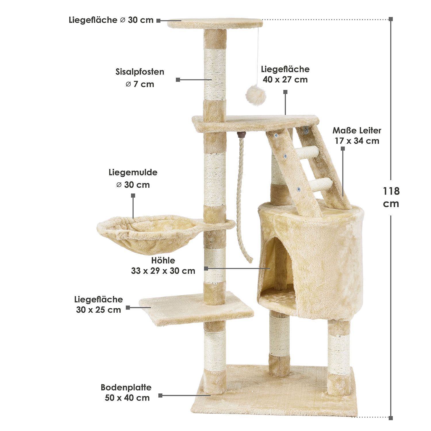 juskys kratzbaum buffy beige katzenbaum mit hohle liegemulde liegeflachen sisal stamme online kaufen bei netto