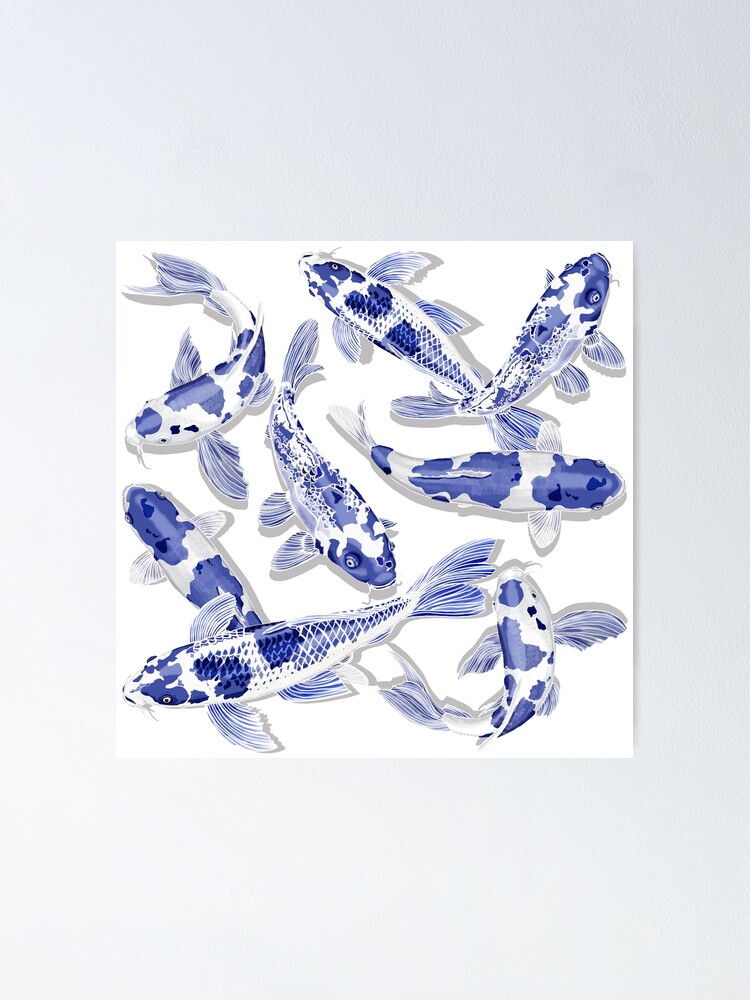 blaue und weisse koi fische poster von rlnielsen4 redbubble