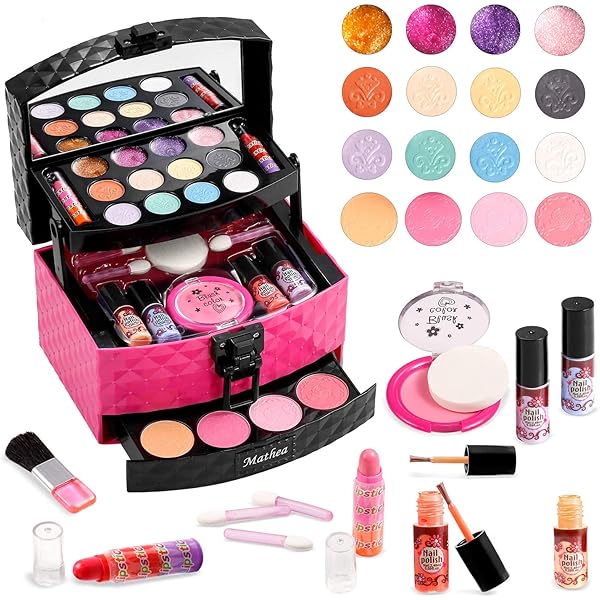 make it real light up cosmetic kit kids makeup case with mirror and lights for girls and tweens includes eyeshadow nail polish blush lip gloss nail file makeup brushes